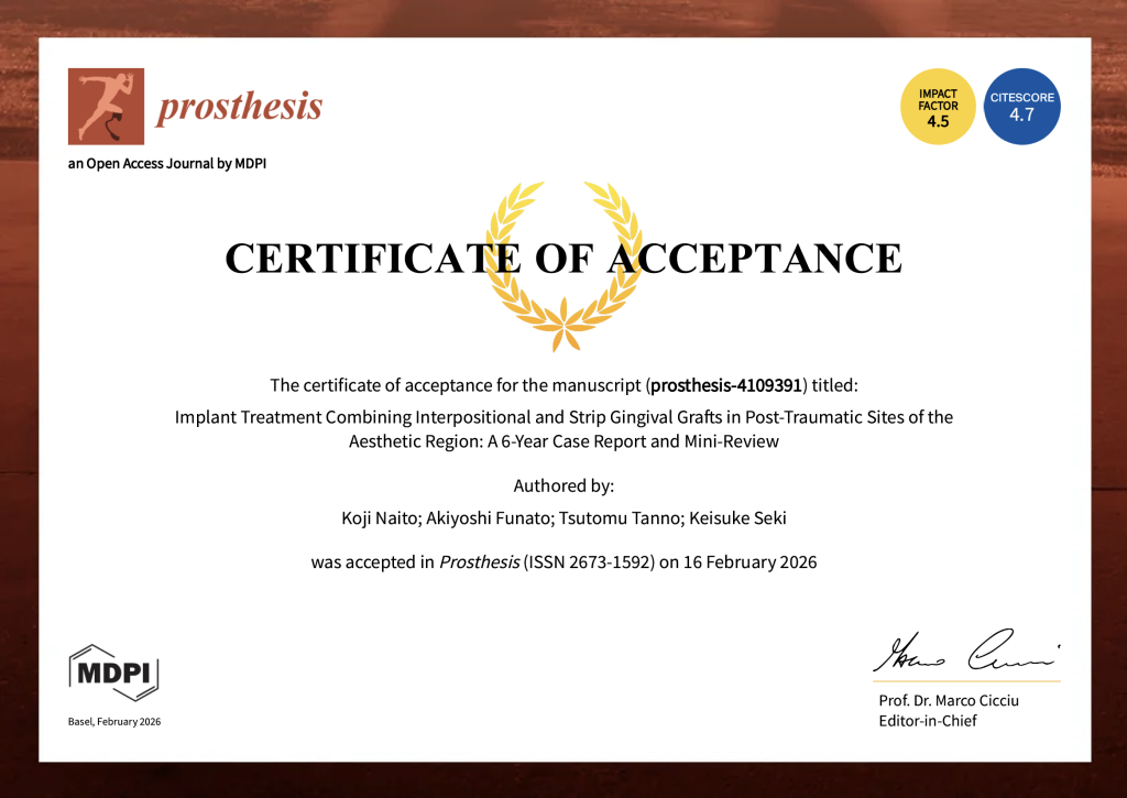 2026年2月16日付でProsthesis誌(ISSN 2673-1592)に受理されました。